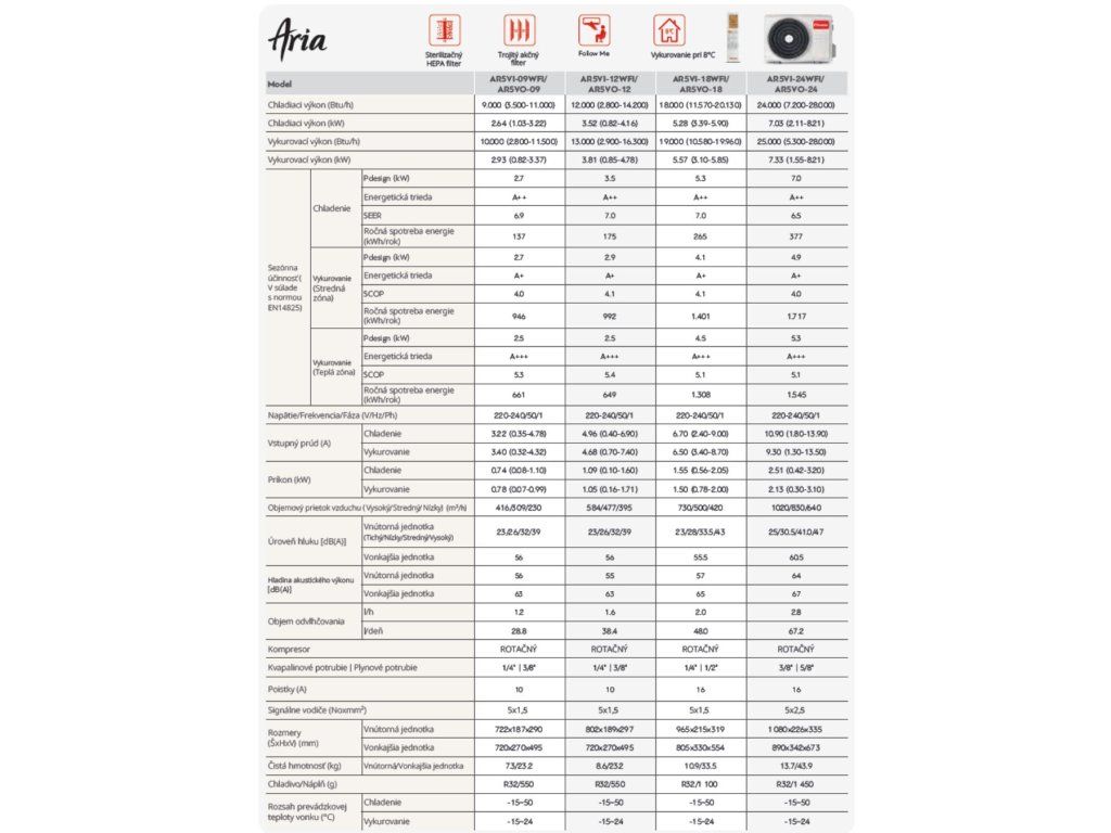 - Energetická trieda: - chladenie A++, kúrenie A+